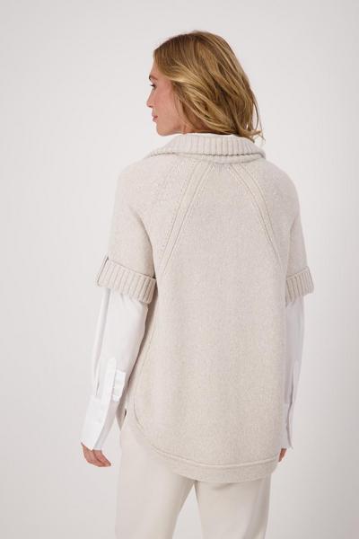 Mit der schicken Halbarm-Strickjacke von monari lassen sich unzählige Outfits kombinieren. Das gerade geschnittene Piece mit gerippten Stehkragen und dekorativen Raglannähten sowie einem Zwei-Wege-Reißverschluss ist immer ein tolles Accessoire zum schnellen Überziehen. Der coole Look mit geripptem Ärmelaufschlag und funkelnden Strassriegeln unterstreicht Ihren lässigen, aber dennoch glamourösen Style gekonnt. Die Form wird von langen Seitenschlitzen und einem abgerundeten Saum stilvoll unterstrichen und macht das Piece zu einem beliebten Begleiter. Zur Hemdbluse mit Rüschendetail und einer hellen Joggerhose ein modischer Blickfang.