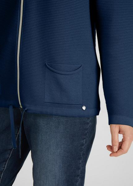 Die unifarbene Strickjacke mit langen Ärmeln und dem besonderen Strickmuster ist ein Allround-Talent. Das Kordelband am unteren Bund und die Taschen geben der Jacke interessante Details. Kombinieren Sie die Jacke leger mit einer Jeans und T-Shirt.