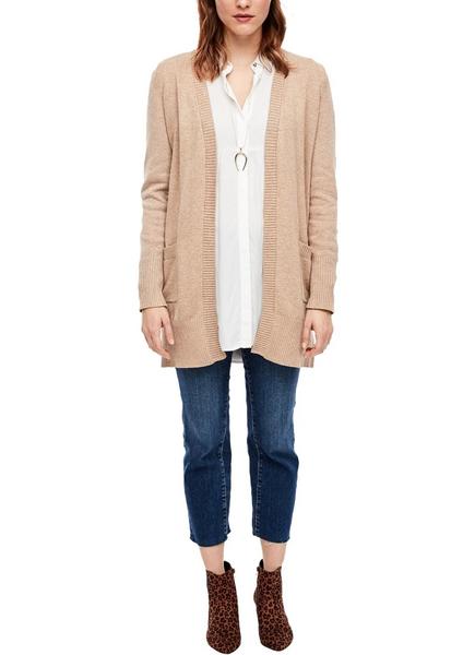 fein gestrickt in Unicolor, offen zu tragen, ohne Verschlüsse, Saumkanten aus Rippstrick, zwei aufgesetzte Taschen vorn, seitlich geschlitzter Saumabschluss, Regular Fit; Rückenlänge bei Größe 36 ca. 84 cm, glatte, weiche Strickware aus Viskosemix