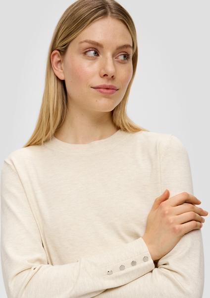 Entdecke unseren femininen Strickpullover für einen zeitlosen Look mit klassischem Charme. Dieser Feinstrickpullover mit eleganten Zierknöpfen besticht durch seine Weichheit und Regular Fit Passform. Die langen Ärmel und der Rundhalsausschnitt verleihen dir eine entspannte Eleganz für jeden Casual-Anlass. Kombiniere ihn mit Jeans für einen mühelosen, schicken Look oder trage ihn über einem Kleid für einen Hauch von Gemütlichkeit. Die Rippblende am Saum verleiht dem Pullover eine modern verspielte Note. Hol dir diesen vielseitigen Begleiter für die kommende Saison und erlebe Komfort in stylischer Ausführung. Worauf wartest du noch.