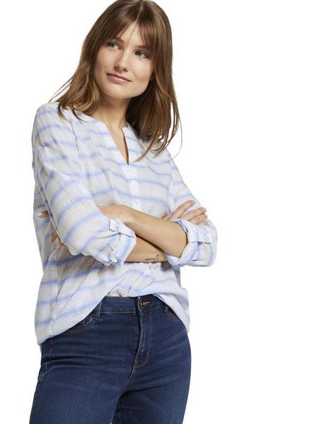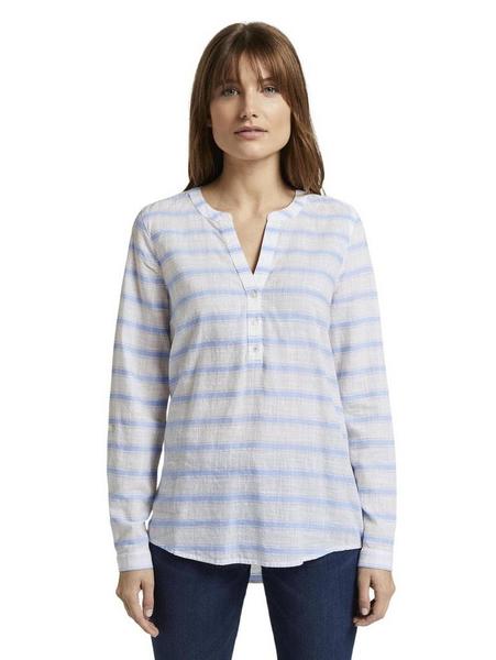 striped henley blouse - 22002/white light blue str Artikel-Nr.: 1017298