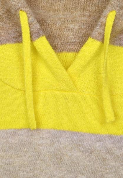 Streifenklassiker: Der Hoodie Pullover von CECIL hat ein tolles Blockstreifenmuster. Die Kapuze wird durch das farbig in Szene gesetzte Tunnelzugband zum lässigen Hingucker und sitzt einfach super gemütlich. Der Flex Knit ist elastisch und macht so jede Bewegung mit und passt sich immer an. Der Hoodie eignet sich perfekt für Alltagsoutfit mit dem besonderen Etwas.\n\n\n Hoodie Pullover\n Blockstreifen\n Kapuze mit Tunnelzugband\n Flex Knit\n Rippsaum\n Maße bei EU-Größe M ca.:\n Länge 63 cm, Brust 53 cm, Saumweite 54 cm\n Material: 38% Polyacryl, 31% Baumwolle, 21% Polyester, 10% Elasthan
