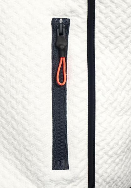 Sporty Style! Lässige Indoor Jacke von CECIL im Hoodie Style. Besonders cool wirken die Kapuze mit Tunnelzugband und die Eingriffstaschen mit Zipper. Eyecatcher ist die moderne Struktur Optik. Die Unifarbe wird von den College Details am Ärmelsaum und den Kickfarben am Tunnelzugband und den Zippern ergänzt.