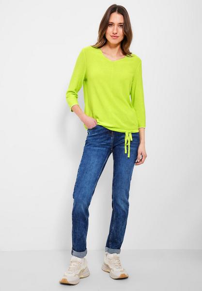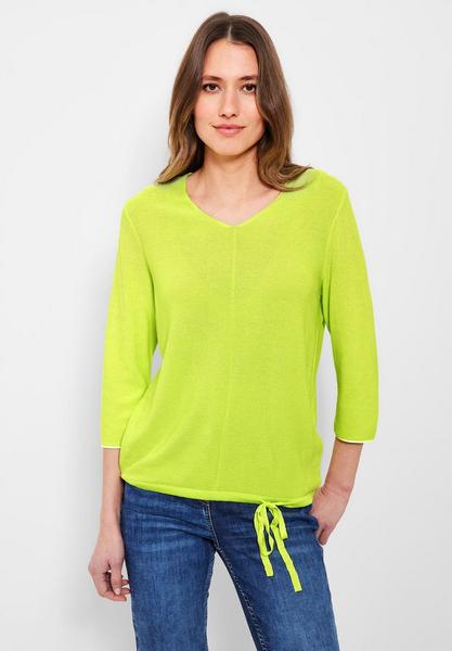 Time to get cosy! Schöner Damen Strickpullover von CECIL in femininen und modernen Look. Der zeigt sich mit V-Ausschnitt, 3/4 Ärmeln mit dezentem Kontraststreifen und einem Tunnelzugband im Saum. Mit der leicht strukturierten Unifarbe lassen sich tolle Styles kreieren. Ein idealer Kombipartner, wenn es im Frühjahr mal ein wenig frischer ist.