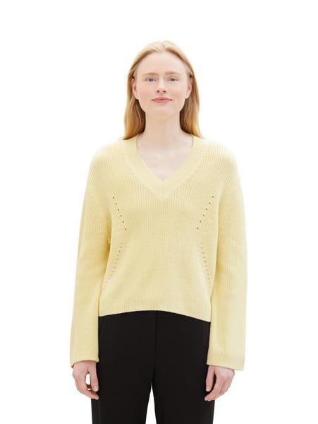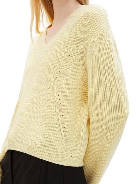 structured v-neck pullover - 34585/light yellow