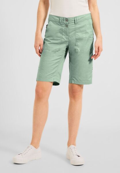 Summer is calling! Die Damen Shorts im Style New York von CECIL zeigt sich mit raffinierten Details. So lassen sich die gerade geschnitttenen Beine durch einen Turn-Up in der Länge variieren. Ein Dekozipper ergänzt den 4-Pocket-Style als cooles Extra. Niedrig geschnitten sitzt die unifarbene Shorts mit doppeltem Knopfverschluss besonders lässig. Loose Fit Low Waist, Straight Legs Saum mit Turn-Up Dekozipper Maße bei Inch-Größe 29/11,5 ca.: Innenbeinlänge 30 cm, Saumweite 26 cm Material: 98% Baumwolle, 2% Elasthan