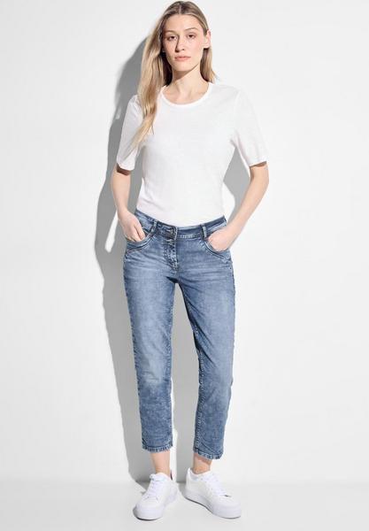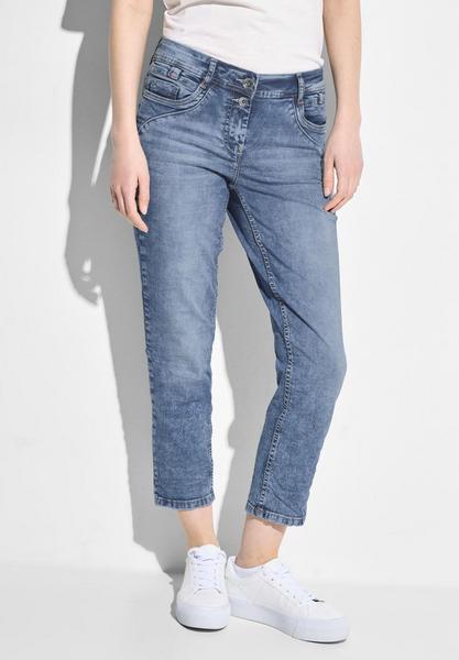 Die Casual Fit Jeans von CECIL im Style Scarlett ist ein absolutes Must-Have für Damen. Mit einem praktischen 2-Knopf- und Reißverschluss, einem schmeichelnden Slim Leg Schnitt und einem funktionalen 5-Pocket Design vereint sie Stil und Komfort in Perfektion. Der Mid Waist Bund und die attraktive hellblaue Waschung verleihen dieser Jeans ihren einzigartigen Charme und machen sie zu einem vielseitigen Allrounder, der sich ideal für jeden Tag eignet. Verkürzte Jeanshose Mid Waist mit Slim Legs Dekorativer Nahtverlauf an den Taschen Hellblaue Waschung Material: 78% Baumwolle, 20% Polyester, 2% Elasthan