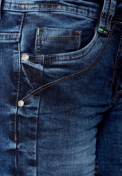 Denim-Liebe! Gemütlich geschnittene Loose Fit Damenhose im Style Scarlett von CECIL. Mit mittlerem Bund und im elastischen Baumwollmix trägt sie sich bequem und macht jede Bewegung mit. Der 5-Pocket-Style in mittelblauer Waschung wird durch schmale Beine und einem Reißverschluss mit Knopf perfekt ergänzt.