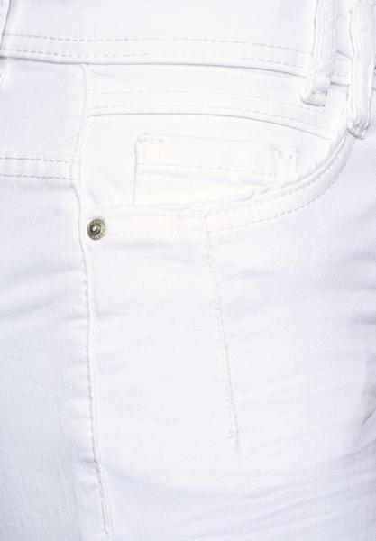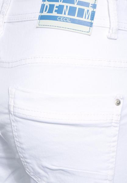 Love Denim! Die Damen Jeans im Style Scarlett von CECIL verbreitet gute Laune. In weiß ist sie ein absoluter Klassiker, der in keinem Kleiderschrank fehlen darf. Schmal zulaufende, verkürzte Beine formen eine tolle Silhouette. In Loose Fit und mit Middle Waist sitzt sie sehr bequem. Der 4-Knopf-Verschluss verleiht dem modernen 5-Pocket Style ein modisches Upgrade.
