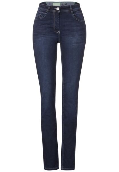 Die CECIL Damenjeans im Style Toronto ist im Slim Fit mit High Waist und Slim Legs gestaltet. Diese Denim präsentiert sich in einer dunkelblauen Waschung und bietet eine schmeichelnde Passform. Mit ihrem zeitlosen Design ist sie vielseitig kombinierbar und ein klassisches Element für deine Garderobe.
