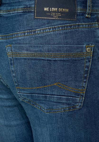 Wear it with love! Die Slim Fit Damenjeans im Style Toronto von CECIL formt mit High Waist und Slim Legs eine tolle Figur. Mit ihrer klassischen mittelblauen Waschung ist sie ein toller Kombipartner, der sich vielseitig kombinieren lässt. Der 5-Pocket Style wird ergänzt durch einen Reißverschluss mit Knopf.