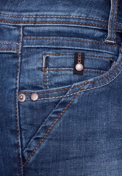 Perfect Denim! Slim Fit Damen Jeans von CECIL im Style Toronto. In High Waist und mit Slim Legs zaubert sie eine tolle Silhouette. Die dunkelblaue Waschung ist ein Allroundtalent und lässt sich vielseitig kombinieren. Die Kombi aus Reißverschluss und den beiden Knöpfen verleiht der Jeans im klassischen 5-Pocket Style eine besondere Note.
