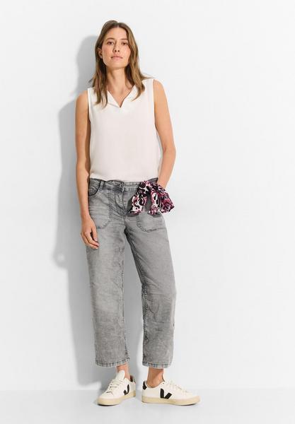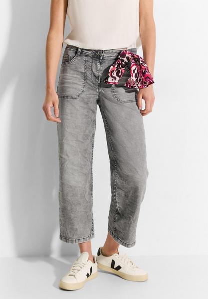 Die 7/8 Culotte Jeans im Style Neele für Damen von CECIL bietet einen lässigen Loose Fit mit einer High Waist und Wide Legs, das für einen bequemen und entspannten Look sorgt. Die vielseitige graue Waschung verleiht ihr einen zeitlosen Charme, während das dekorative Bandana mit Print einen trendigen Akzent setzt. Jeanshose im Loose Fit High Waist mit Wide Legs Lässig und bequem durch den Tag Vielseitige graue Waschung Dekoratives Bandana mit Print Material: 78% Baumwolle, 20% Polyester, 2% Elasthan