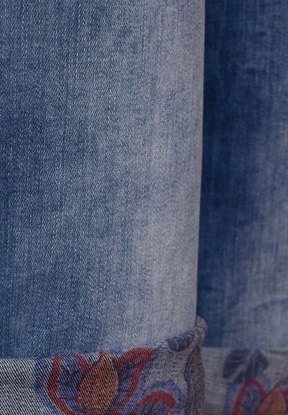 Summerfeelings! Slim Fit Damen Jeansshorts mit High Waist im Style Toronto von CECIL. Die mittelblaue Waschung bekommt durch den Print innen am Saumaufschlag einen farbenfrohen Hingucker. Abgerundet wird der 5-Pocket Style durch den Reißverschluss mit zwei Knöpfen.