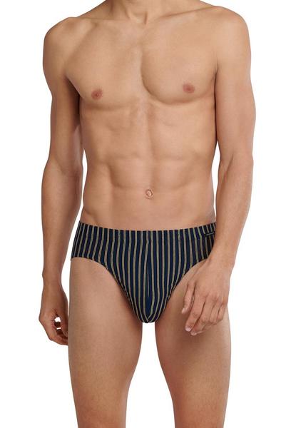Bei diesem blauem Supermini-Slip trifft ein klassisches Design auf perfekte Passform! Curry-gelbe Längsstreifen schenken dem Slip seinen stilvollen Look, der in weichem, elastischem Single Jersey auch hautnah spürbar wird. Mit 5% Elastan ist für eine optimale Passform und Formstabilität gesorgt und dank 95% Baumwolle ist die Unterhose besonders hautsympathisch. Ein komfortables Tagwäsche-Basic in bester SCHIESSER-Qualität! Auch in großen Größen erhältlich!