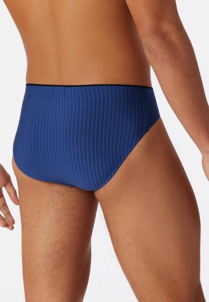 Dieser nachtblau gestreifte Supermini aus der SCHIESSER-Serie "Long Life Soft" überzeugt anspruchsvolle Herren durch ein innovatives Material und eine optimale Passform. Dank der einzigartigen ReaLasting-Cotton-Verarbeitung gewährt der Slip nicht nur ein perfektes Feuchtigkeitsmanagement, sondern passt sich zudem in elastischem Single Jersey sanft jeder Bewegung des Körpers an. Eine pilling-arme, angenehm glatte Herrenunterhose, die auch nach vielen Waschgängen in Bestform bleibt!