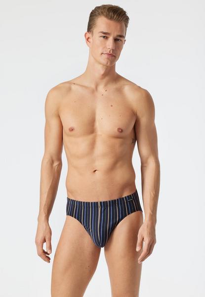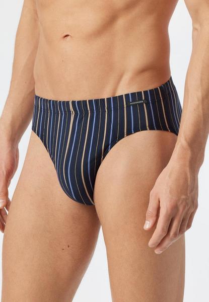 Ein maskulines Wäsche-Basic zum Wohlfühlen: Bei diesem Supermini-Slip für Herren trifft hoher Tragekomfort auf ein modernes Streifen-Design in Jeansblau und Braun auf blauem Fond. Innen wie außen ist das Muster identisch. Ein softes Hautgefühl und perfekten Halt garantieren der hochwertige und angenehm elastische Single-Jersey aus 95% Organic Cotton und 5% Elastan zusammen mit dem versteckten Softbund. Ein männlicher, modischer und maximal bequemer Slip in bester SCHIESSER-Qualität!