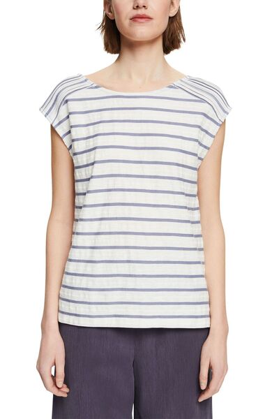 * Jersey aus reiner Baumwolle * Feine Strukturstreifen * Rundhalsausschnitt, hinten tiefer ausgeschnitten * Falten-Details an den vorderen Schultern * Seitliche Saumschlitze * Gerade Passform