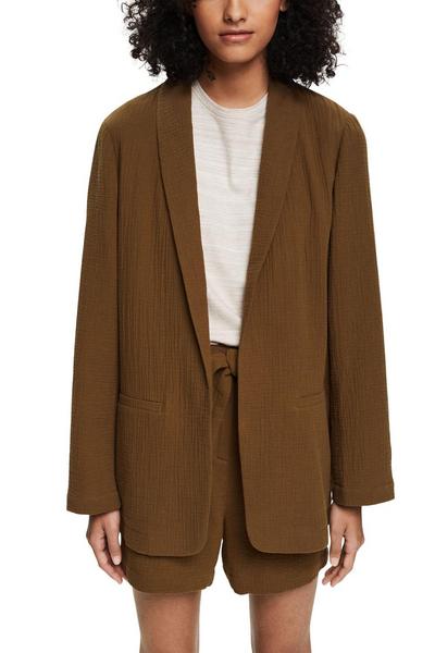 * Webstoff aus 100% Baumwolle * Innen ungefüttert * Lässiger Crinkle-Effekt * Abfallender Reverskragen * Verschlusslose Form * Zwei Paspeltaschen vorne auf Hüfthöhe * Oversize Passform