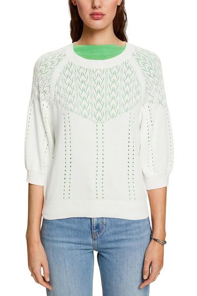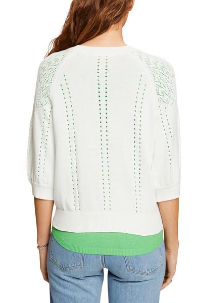 * Strickqualität aus reiner Baumwolle * Runder Ausschnitt * Zarte Einsätze aus Häkelspitze * 3/4-Ärmel * Ausschnitt, Ärmelabschlüsse und Saum gerippt