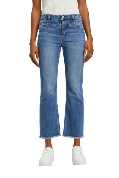 * Nachhaltiger Baumwollmix für zusätzlichen Stretchkomfort * 4-Taschen-Stil * Fransige Beinabschlüsse * Capri-Jeans mit mittlerer Bundhöhe * Markante Form mit verkürztem, ausgestelltem Bein