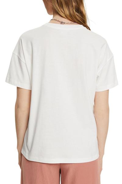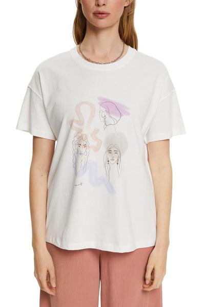 * Jersey aus reiner Baumwolle * Rundhalsausschnitt * Leicht überschnittene Schultern * Kunstvoller Frontprint mit Farbakzenten * Gerade Passform