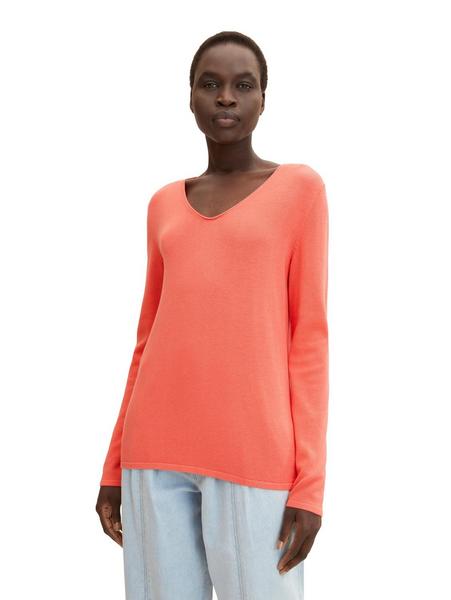 sweater basic v-neck - 12230/Smooth Papaya Red