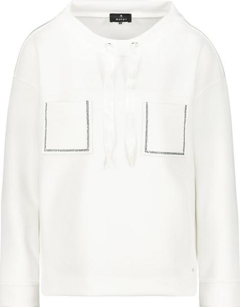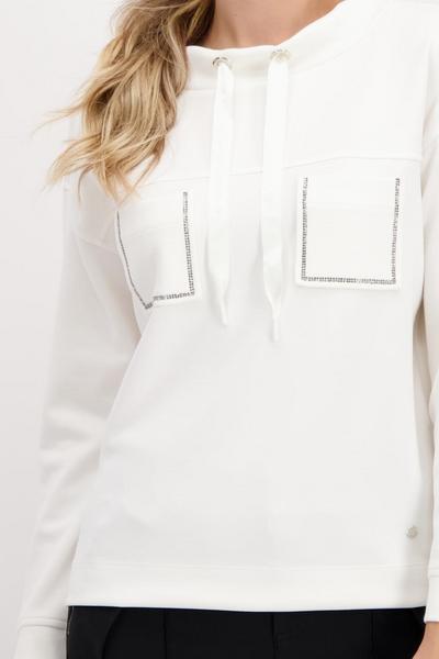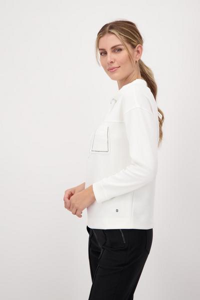 Die softe Qualität dieses schönen monari Sweatshirts fühlt sich unfassbar gut auf Ihrer Haut an. Der Fit: gerade geschnitten mit breiten Bündchen an Ärmelenden und am Saum, einem Stehkragen mit glänzendem Satinband mit 3-D-Wording und leicht überschnittenen Schultern. Die Vorderseite präsentiert sich modisch mit zwei aufgesetzten Taschen mit funkelndem Strassrahmen auf Brusthöhe und einer Passennaht. Ein wahrer Allrounder!