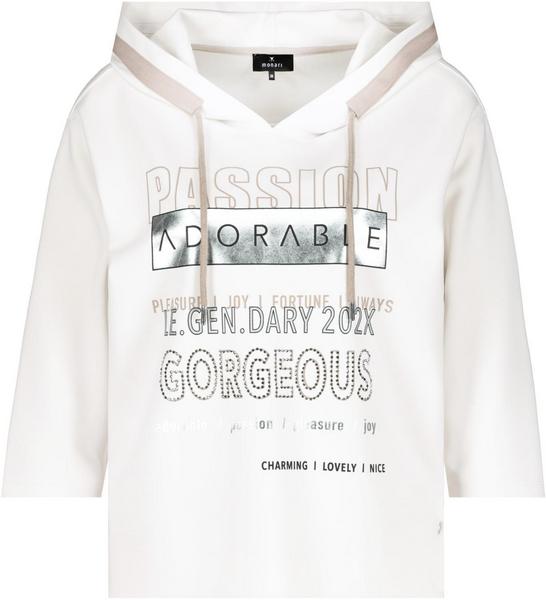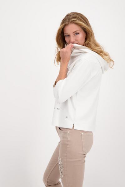 Mit diesem Sweatshirt von monari können Sie unzählige Looks kreieren. Die Regular Fit Passform wird von einem 3/4 Arm und einer Kapuze mit Teilungsnaht, Kontrastblende, Tunnelzug und einem Band zum Binden vollendet. Die Seitenschlitze sorgen zudem für einen lässigen Tragekomfort. Die Vorderseite des Damen Sweatshirt wird mit einem glänzenden Schriftdruck und Glitzerschrift geschmückt und verleiht dem Sweater einen glamourösen Touch. Freuen Sie sich auf Ihr neues Stretch Sweatshirt mit Styling-Potenzial und kombinieren Sie nach Lust und Laune.