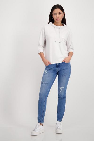Das Sweatshirt besticht durch seine sanfte Haptik und die aufgesetzte Brusttasche mit funkelnden Strasssteinen.