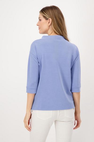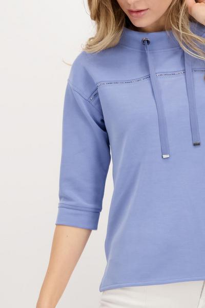 Neues Update für einen Klassiker von monari. Das Damen Sweatshirt mit 3/4 Arm zeigt sich mit einem Stehkragen mit Tunnelzug, Ringösen und Bindeband, überschnittenen Schultern und einer Teilungsnaht mit funkelnden Strasssteinen auf der Vorderseite. Qualitätsmerkmal: Unifarbenes Sweatstoff Shirt aus softem Modal Mix mit angenehmen Stretch. Das Sweatshirt mit Seitenschlitze ist ein wahrer Alleskönner. Tragen Sie das Piece zu fast jeder Gelegenheit. Worauf warten Sie noch.