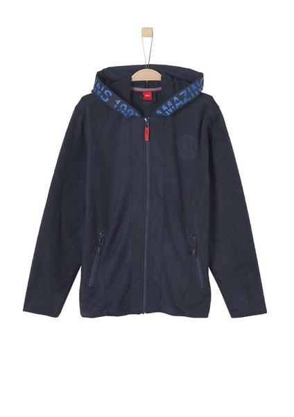 Kapuze mit bedruckter Blende, Frontzipper mit Kontrast-Detail, zwei Eingrifftaschen mit Reißverschluss, Ton-in-Ton-Paspelierung an Ärmeln und Saumabschluss, bequeme Passform; Rückenlänge bei Größe M ca. 62 cm, weiche Fleece-Qualität