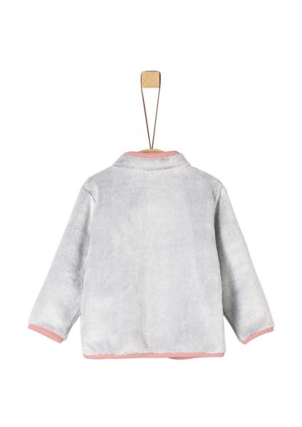 paspelierte Saumkanten in Kontrastfarbe, Rundhalsausschnitt mit schmalem Stehkragen, durchgehender Reißverschluss mit süßem Stern-Puller, kleiner Labelpatch aus Stoff auf der Brust, zwei seitliche Eingrifftaschen, bequeme Passform, kuschelige Kunstfell-Qualität mit superweichem Griff