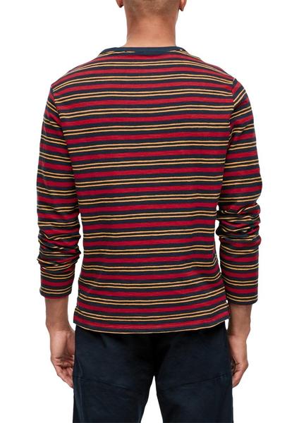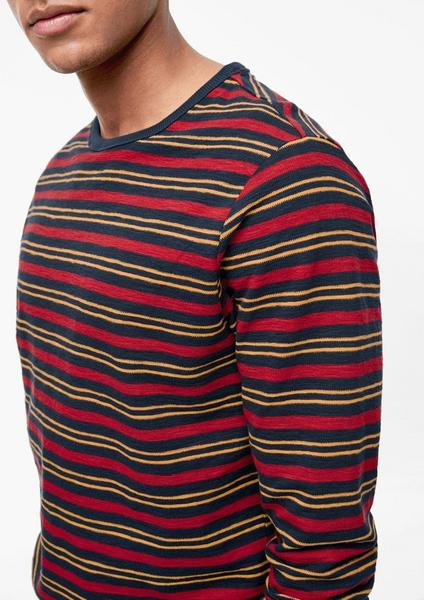 feine Flammgarnstruktur im gestreiften Design, Rundhalsausschnitt mit gerippter Blende, reguläre Passform; Rückenlänge bei Größe M ca. 70 cm, softe Webware aus reiner Baumwolle