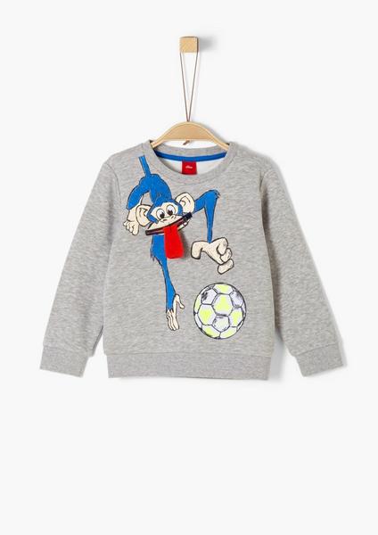 Frontprint mit Flock-Partien und Neonakzent, Blickfang: kleine Zippertasche mit witziger Applikation, Rundhalsausschnitt mit grob gerippter Blende, Ärmel- und Saumabschluss mit stretchigem Rippbündchen, Regular Fit; Rückenlänge bei Größe 104/110 ca. 40 cm, softe Sweatware aus Baumwollmix