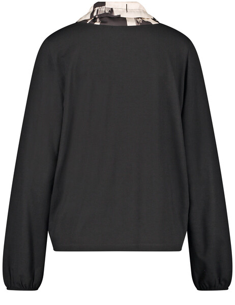 Locker fallender Kragen mit Tunnelzug. Front und Kragen aus bedrucktem Sain. Dein Style sollte genauso vielseitig sein wie du selbst! Unser neues Shirt ist der perfekte Ausdruck von lässiger Eleganz. Der Materialmix aus bedrucktem Satin und soft-elastischem Jersey ist einfach der Knaller, während der locker fallende Kragen mit Tunnelzug einen sportiven Touch verleiht. Ob im Alltag oder auf einer Party, dieses Shirt macht dich überall zum Blickfang!
