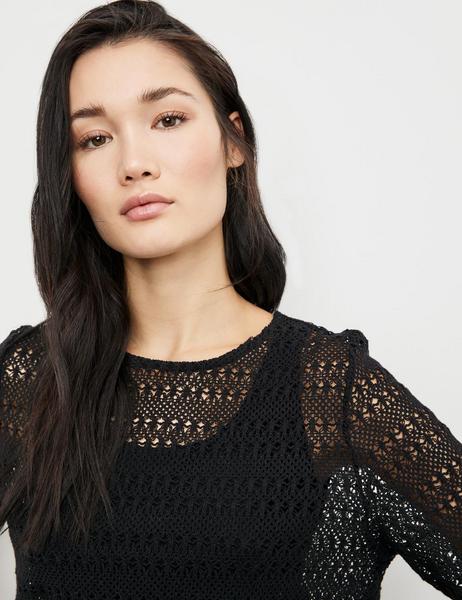 Häkelspitze. Seitliche Saumschlitze. Lovely Summer-Piece! Das aufwendig gestaltete Häkelspitzen-Design lässt verführerisch Haut durchschimmern und macht dieses Shirt zum echten Blickfang.