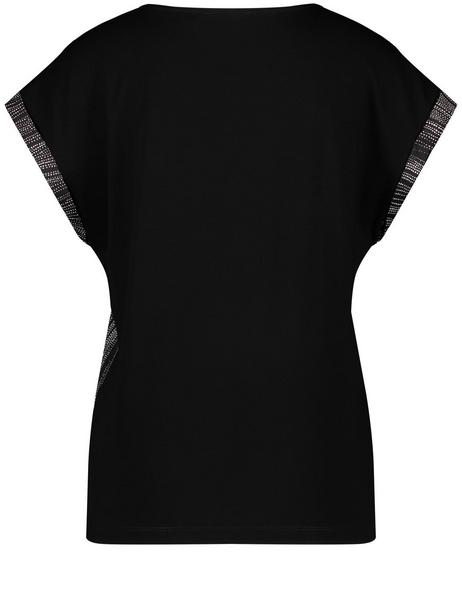 Zierknoten mit Schlitz am Ausschnitt. Gemusterte Satin-Front. Ergänzt auf stilvolle Weise dein Outfit: Dank diesem Blusenshirt mit vertikalem Alloverprint entdeckst du zahlreiche Kombinationsmöglichkeiten. Der Material-Patch aus Satin-Front und softem Jersey-Rücken unterstreicht den edlen Charakter, während der Ausschnitt mit Zierknoten und Cut-Out Akzente setzt.