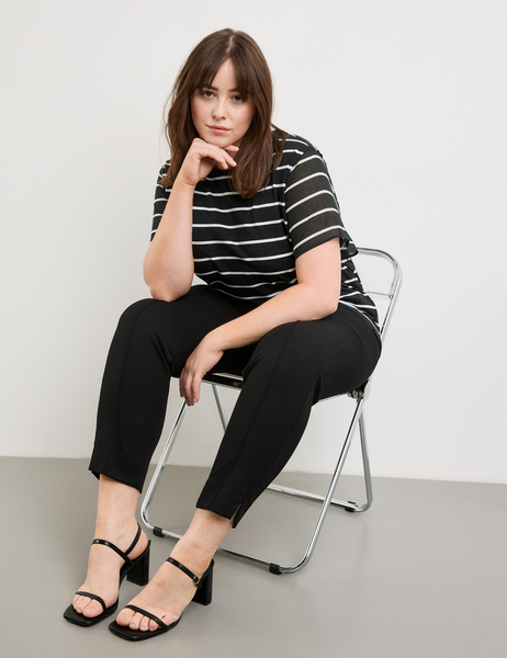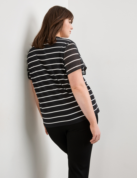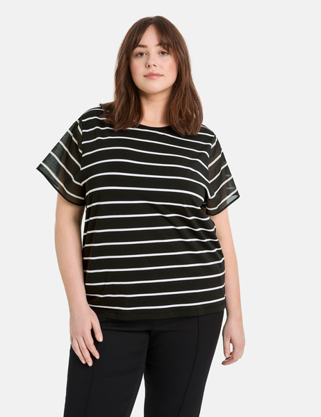 Luftige Ärmel aus zartem Baumwoll-Voile. Softer Ringel-Jersey im Rumpf. Entdecke das Ringel-Shirt, das die perfekte Balance zwischen Style und Komfort findet. Der Material-Patch aus soft-elastischem Jersey im Rumpf und luftigen Ärmeln aus zartem Baumwoll-Voile sorgt für ein leichtes und angenehmes Tragegefühl. Perfekt für einen entspannten Look mit dem gewissen Extra!