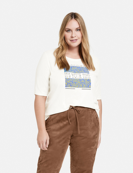 Abgerundeter Saum. Frontprint mit Wording. It's your time to shine! Mit dem figurumspielenden T-Shirt mit Wording-Print lassen sich viele unterschiedliche, trendige Looks kreieren. Der nachhaltige Jersey ist herrlich sanft zur Haut.