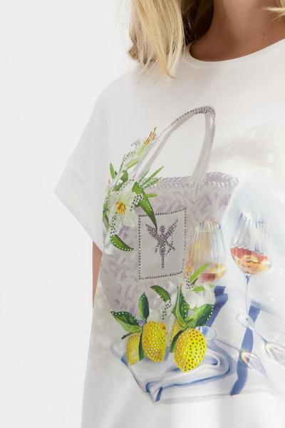Stylishes Shirt aus sanftem Material mit Foto Print und Strass.