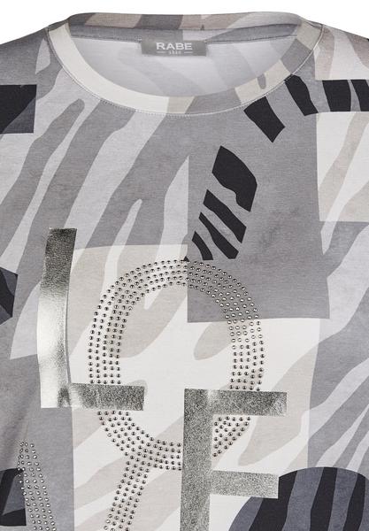 Das T-Shirt aus Viskose schmiegt sich sanft der Haut an. Statements setzt es mit auffälligem Wording abwechselnd in Glanz- und Strass-Optik. Der trendige Camouflage-Print macht das T-Shirt zum Hingucker. Der geraffte Saum ist ein weiteres Highlight dieses T-Shirts. Kombinieren Sie es zum Outfit mit einer dunklen Jeggings und Sneaker.