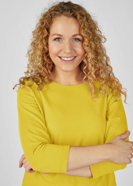 Dieses Beerefarbene Baumwoll-T-Shirt mit 3/4 Arm lässt sich hervorragend kombinieren. Dieses Basic-Shirt gehört einfach in jeden Kleiderschrank. Lassen Sie sich inspirieren und kombinieren Sie das T-Shirt zu einer plissierten Hose, Jeansjacke und coolen Sneakern.