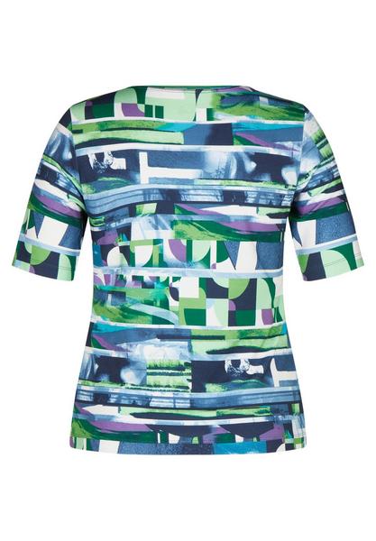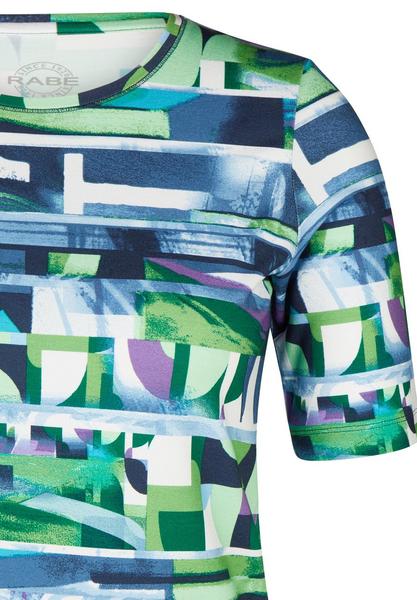 Entdecken Sie unser exklusives Halbarm-Shirt mit einem abstrakten Muster in den erfrischenden Farben Blau und Grün, das durch lila Highlights ergänzt wird. Hergestellt aus hochwertiger Viskose-Elasthan-Qualität, bietet dieses Shirt ein angenehmes Tragegefühl und eine hervorragende Passform. Der Rundhalsausschnitt verleiht dem Shirt einen klassischen Touch, während der taillierte Schnitt eine schmeichelhafte Silhouette schafft. Perfekt für den Sommer, verleiht Ihnen dieses stilvolle Shirt einen Hauch von Eleganz und Individualität. Holen Sie sich jetzt dieses einzigartige Kleidungsstück und lassen Sie sich von seinem modernen Design begeistern.