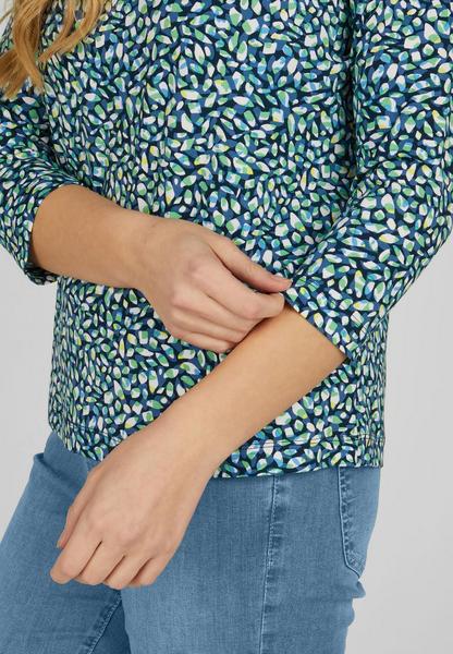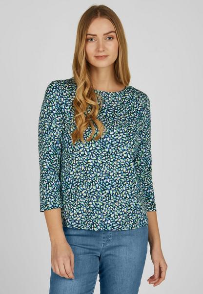 Dieses elegante Shirt mit 3/4-Arm ist die perfekte Ergänzung für Ihre Garderobe. Mit seinem dezenten Minimalmuster und dem klassischen Rundhalsausschnitt verleiht es Ihnen einen zeitlosen und vielseitigen Look. Hergestellt aus hochwertigem Viskose-Elastan-Material, bietet es hervorragenden Tragekomfort und eine optimale Passform. Ein Must-have für jeden Anlass!