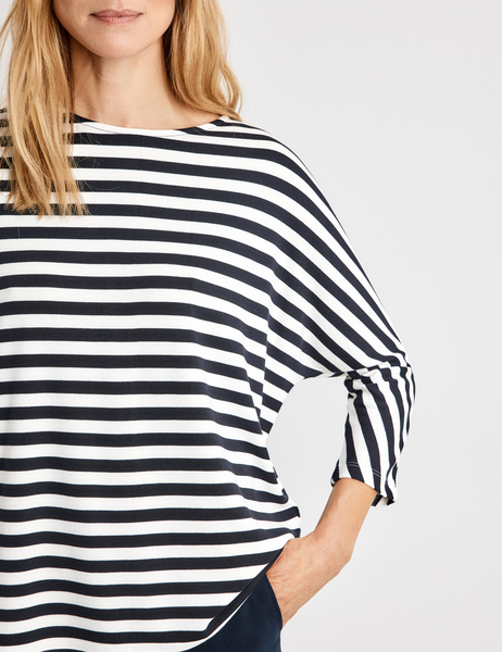 T-SHIRT 3/4 ARM - 08092/BLAU/ECRU/WEISS RINGEL
