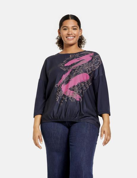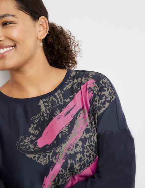 Fließende Web-Front mit Print. Ärmel und Rücken aus softem Jersey. Komplettiert dein Outfit und darf in keiner Garderobe fehlen: Dank diesem legeren 3/4-Arm-Shirt mit elastischer Raffung am vorderen Saum kannst du unterschiedlichste, stylishe Outfits kreieren. Der Material-Patch aus Web-Front und softem Jersey-Rücken lässt sich angenehm tragen.