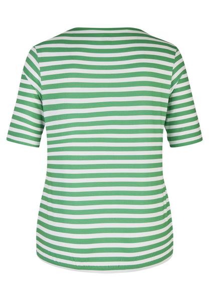 Mit U-Boot-Ausschnitt in gestreifter Optik überzeugt dieses klassische T-Shirt mit 1/2-Arm. Abgerundet wird es durch den floralen Print, der mit einem Quer-Logo-Print einhergeht. Kombiniert mit einer farbigen Leinenhose wird es zum perfekten Outfit.