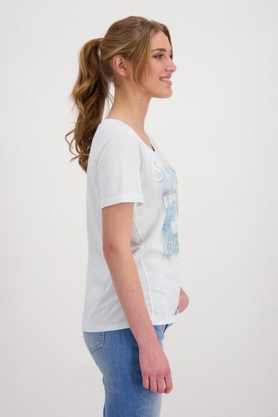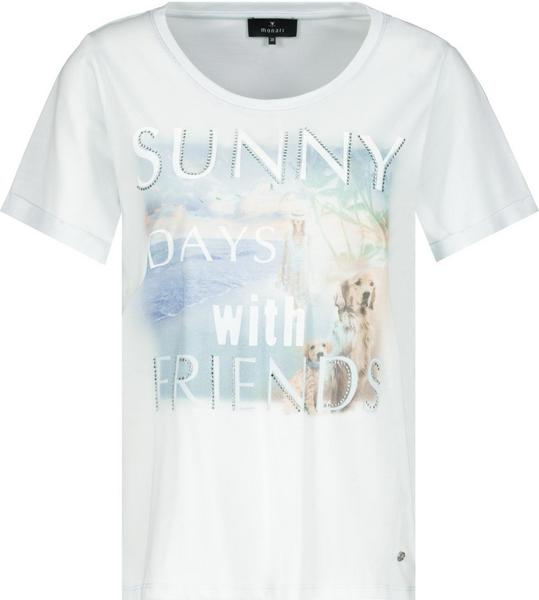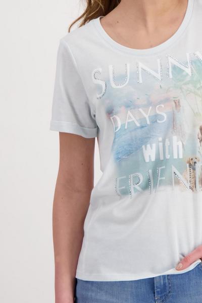 Freuen Sie sich bereits jetzt auf dieses stilvolle Fotoprint T Shirt von monari. Geschmückt wird der Fotoprint einer Frau mit ihrem Hund von funkelndem Strass und schöner 3D Schrift. Der Halbarm endet mit einem Ärmelaufschlag, während die Regular Fit Passform von einem Rundhalsausschnitt mit Blende und Lurex Overlock-Naht ergänzt wird. Auf der Vorderseite von diesem modischen Damen T Shirt sieht man neben dem Fotoprint auch noch zwei diagonal vorverlegte Seitennähte. Baumwolle und Modal garantieren im Mix einen qualitativ hochwertigen Tragekomfort. Mit einer Slim Fit Jeans kombiniert, lässt sich das T Shirt für Damen super in Szene setzen. Überzeugen Sie sich selbst.