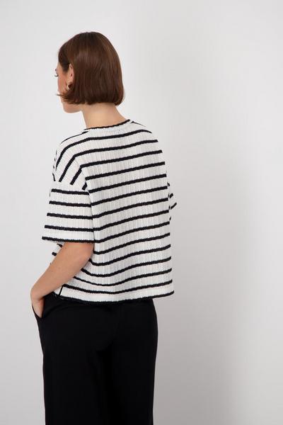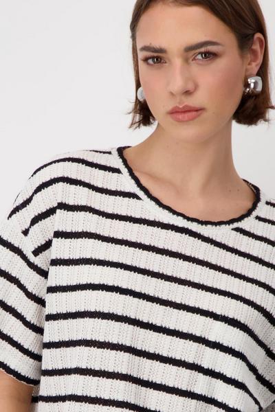 Das Ringel T-Shirt besticht durch sein modernes Ajour-Muster und die praktische Brusttasche.